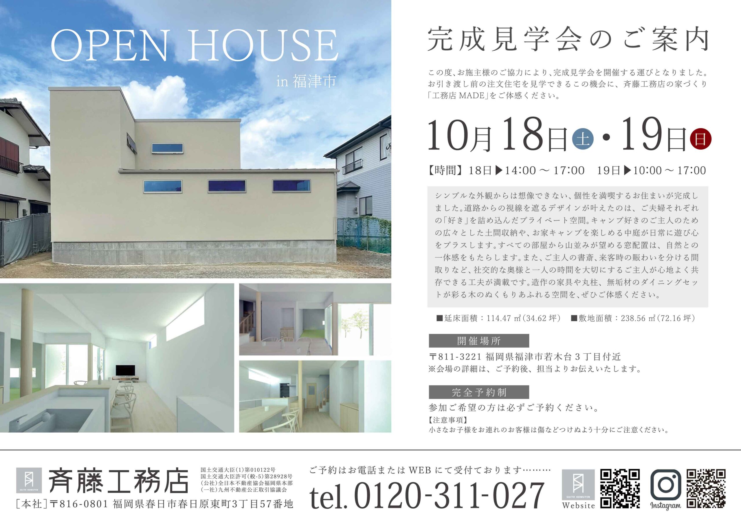 お引き渡し前の注文住宅を見学できるこの機会に、斉藤工務店の家づくり「工務店MADE」をご体感ください。