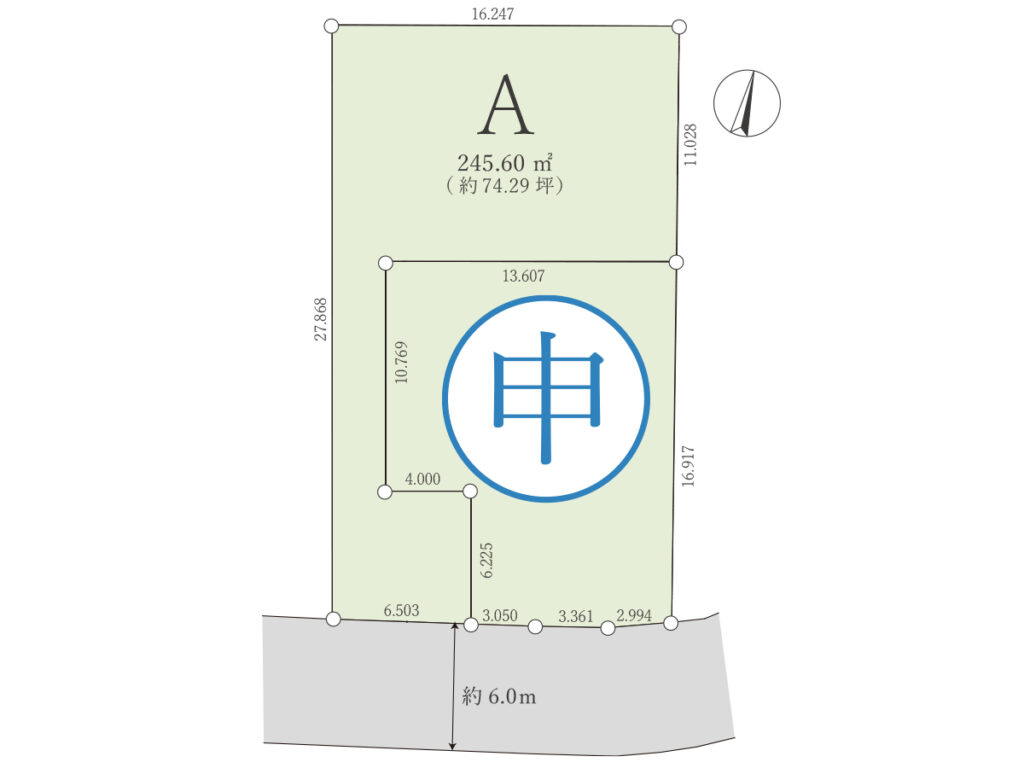 | 【私道負担・道路】 | 南側道路幅:6.0m、アスファルト舗装 |