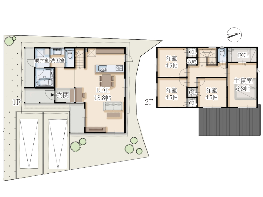 1階面積 48.44㎡(約14.65坪) 2階面積 49.68㎡(約15.02坪) 延べ床面積 98.12㎡(約29.68坪)